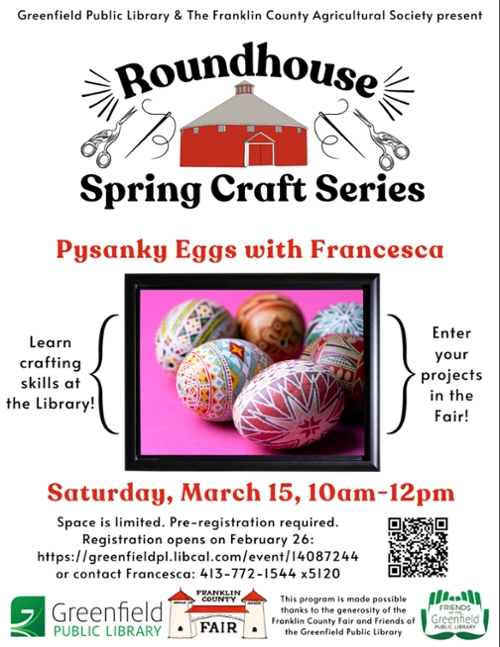 Pre-registration opens February 26 and closes two days before the event: https://greenfieldpl.libcal.com/event/14087244