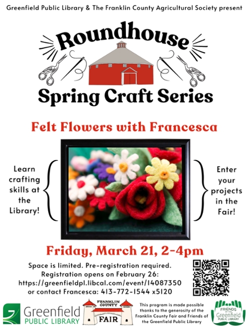 Pre-registration opens February 26 and closes two days before the event: https://greenfieldpl.libcal.com/event/14087350