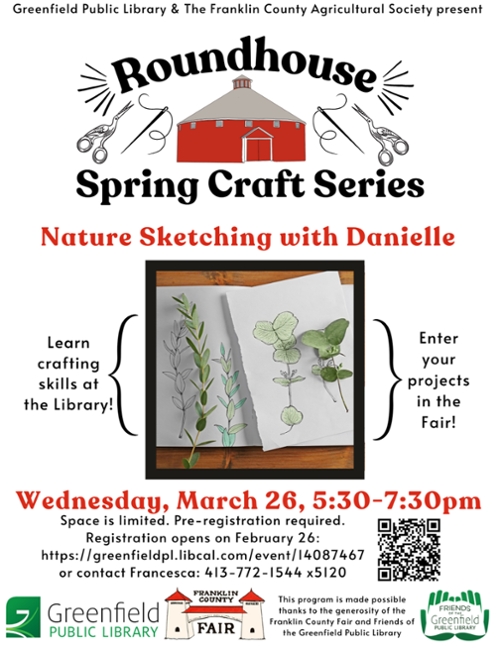 Pre-registration opens February 26 and closes two days before the event: https://greenfieldpl.libcal.com/event/14087467