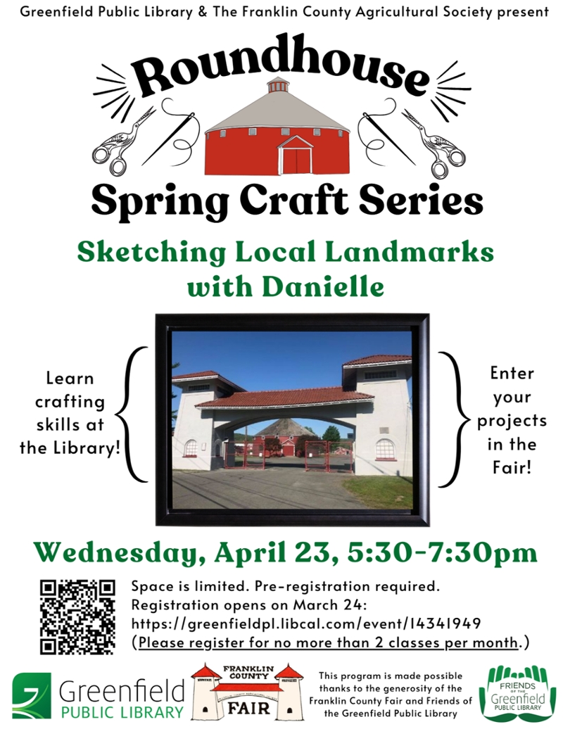 Pre-registration opens March 24 and closes two days before the event: https://greenfieldpl.libcal.com/event/14341949